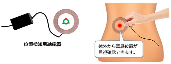 非接触給電技術を応用し、内視鏡やカテーテル、鉗子などの位置をモニター越しではなく直接的に可視化することに利用可能です。