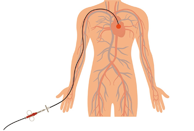 放射線などに代わり、低侵襲で体内の医療器具を視覚化する技術です。