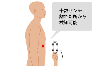 体内に植え込まれた医療機器を体外から給電して発光させることで、体表からその位置を識別できる、画期的な医療機器向け位置検知ソリューションです。