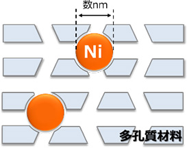 触媒が多孔質材料内部に固定される姿がラムネの瓶とビー玉に似ていることからラムネ触媒®と名付けました。