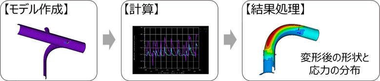 構造・熱・流体・電磁界シミュレーションといった理論解析技術を活用することにより、当社独自の解析ノウハウを蓄積しながら、理論的裏付けに基づく信頼性確保・効率的な製品設計に貢献しています。具体例として、ワイヤーハーネスの屈曲解析による変形・応力の評価が挙げられます。また、第一原理計算などの材料シミュレーション技術を用いて、ナノ材料の特性発現メカニズムを理解することによって、研究開発を促進しています。