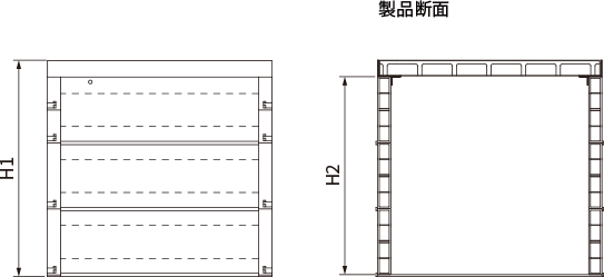 | RBX-75-155-100-J1 | 750×1550, H=1,000 | 19 | 14kg 4段 | 23 | 15kg2枚、6kg1枚 | 134 |