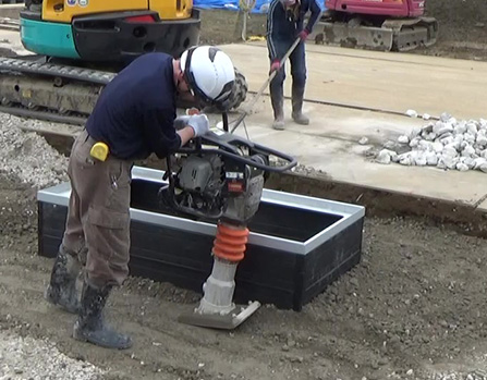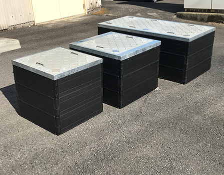 一段200mm高さの側壁を積み重ねて施工する組立式ハンドホールです