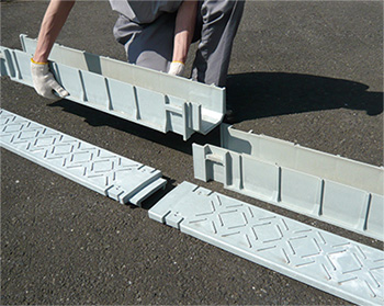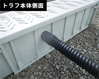 - 容器包装リサイクル法により分別収集された廃プラスチックを主原料とした環境にやさしいケーブルトラフです。
