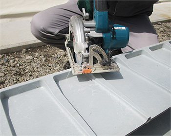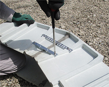 固定用ゲタトラフの左右のずれ防止と排水対策が可能です。
