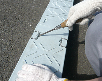 蓋固定方式留め金具グリーントラフの蓋は必ず留め金具、ワンタッチバンドまたは固定用ビスで固定してください。