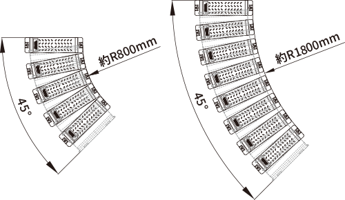接続数、連結角度の組み合わせにより、曲げ半径と角度を自在に作り出せます!