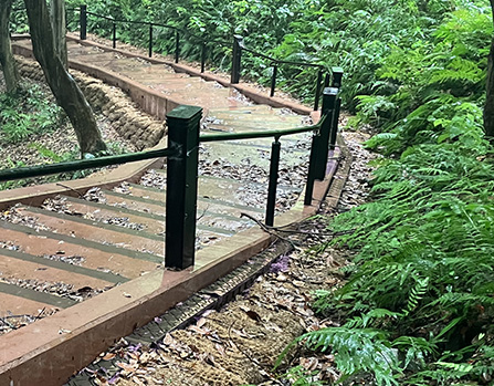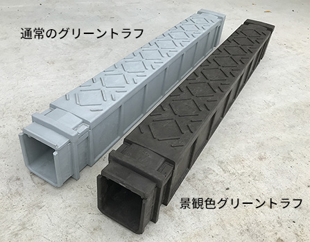 従来の再生プラスチックに製材所などから排出される木粉を配合した木粉複合景観色グリーントラフ®を開発しました。