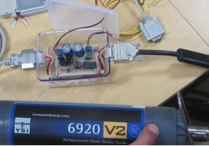 観測結果は、光モデムにより変換され、光ファイバにより離れた場所まで伝送可能であり、海水温はもちろんのこと、海中の水素イオン濃度(pH)、溶存酸素濃度(DO)、塩分などの水質観測結果を遠隔地から連続的に監視することを可能としました。