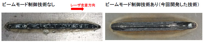 当社製ファイバレーザが有する「高エネルギー密度ビーム」と「ビームモード制御技術」を用いて、亜鉛めっき鋼板の密着連続溶接に最適なビームモードを形成し、溶接欠陥を飛躍的に削減しました。