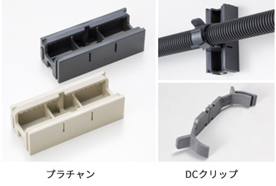 一方、これまでは樹脂管の施工に金属製のチャンネル部材が使用されてきましたが、現場での電動工具による切断作業や、切断時のバリ取り、切断箇所への保護キャップの取付け、金属の防錆処理が必要なことから、施工の安全性と省力化が求められていました。