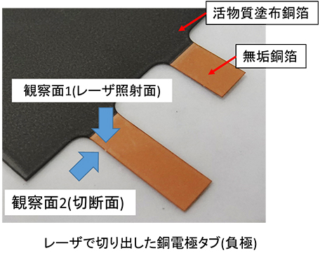 負極集電体(t=8μm)と正極(t=100μm)の切断結果