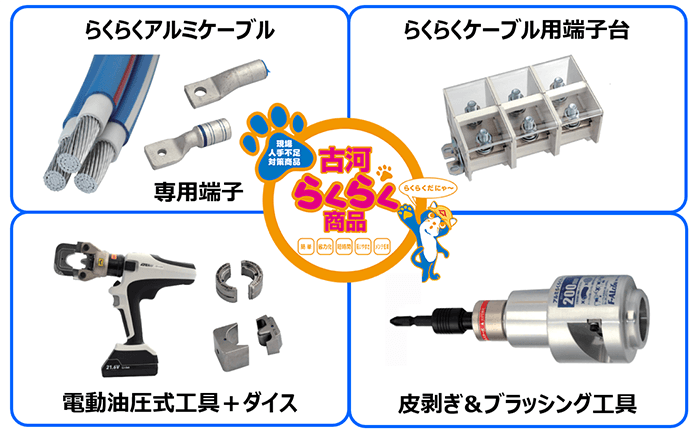 当社グループは、人手不足の現場で求められている「省力化」「簡単」「扱いやすさ」「短時間」「メンテナンス低減」に貢献する商品群を「古河電工らくらく商品」と名付けて展開しています。今後、「らくらくアルミケーブル」の売上高を2024年度までに20億円に拡大する計画 です。