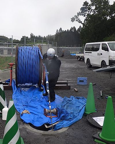 施工を行った株式会社大鹿電業様は、電気設備・通信設備工事の設計施工に加えて、再生可能エネルギー事業にも力を入れており、設備の施工だけでなく、自社でもメガソーラー発電所を運転し、地域の活性化に貢献しています。今回の施工について大鹿電業様からは、「600Vおよび6600VのAL-CVケーブルの採用は、軽量化による省力化効果を狙ったもので、実際に約20%の削減効果があった。また、作業員の疲労もかなり軽減された。6600V AL-CVケーブルの端末処理のブラッシング工程も慣れれば何の問題もない」との評価をいただきました。