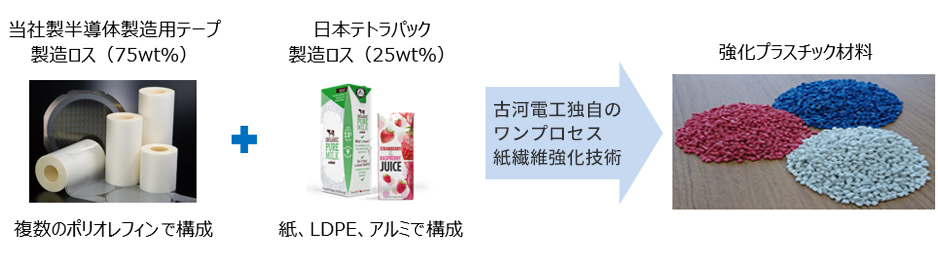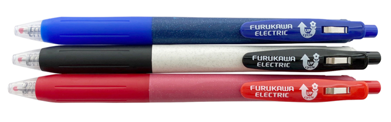 古河電気工業株式会社(本社:東京都千代田区丸の内2-2-3、代表取締役社長:小林敬一、以下「古河電工」)は、食品や洗剤包装などに使われているリサイクルが困難な積層フィルムを強化プラスチック材料に再生する技術を開発しました。また、その技術を用いて、日本テトラパック株式会社(本社:東京都千代田区富士見2-10-2 飯田橋グラン・ブルーム8F、代表取締役社長:ヘンリック・ハウゴー、以下「日本テトラパック」)、ゼブラ株式会社(本社:東京都新宿区東五軒町2-9、代表取締役社長:石川真一、以下「ゼブラ」)にご協力いただいいて、ボールペンを作り、社内使用を開始しました。今後は、文具・家具・電化製品・自動車部品など、用途を拡大して、プラスチックごみ問題解決に貢献してまいります。