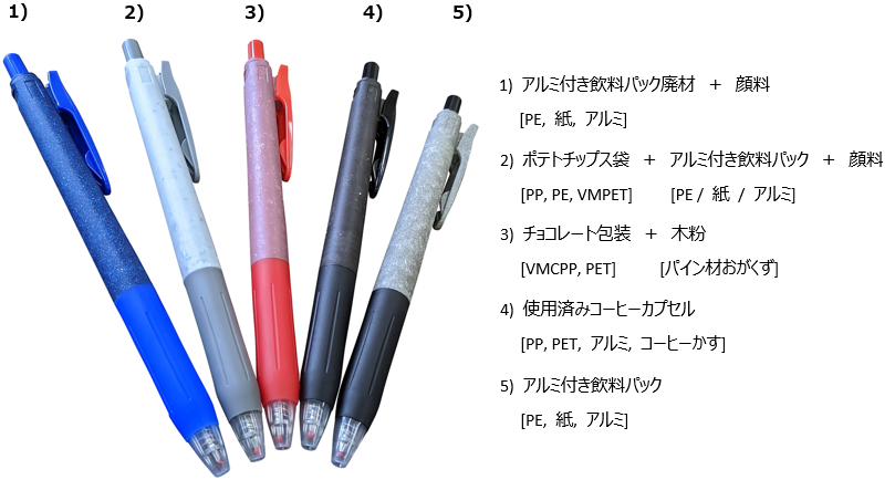 また、他の食品包装プラスチックでも、同様にボールペンの試作(注1)に成功しています。