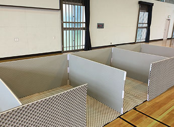 壁緩衝材・床マット・パーティションの用途を備えており、災害時は避難所などで組み立てて利用できます。