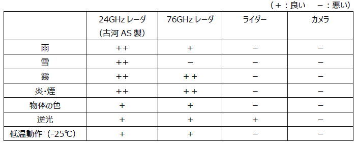 - 雨・雪・霧の影響を受けにくく、昼・夜・逆光などの照度の変化に強く、低温動作に優れています。(添付資料④)