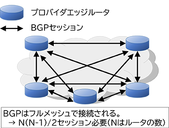 大規模なネットワークを構築・運用している通信事業者にとって、網の拡張性や安定性の確保は必須となっています。これまで通信事業者のバックボーンネットワークでは、BGPをフルメッシュで構築することによる通信網全体のパフォーマンス低下(BGPフルメッシュ問題)に対処するために、BGPセッションを集約するルートリフレクタを導入し、各ルータが保持すべきセッション数を減らすことで負荷を軽減していました。