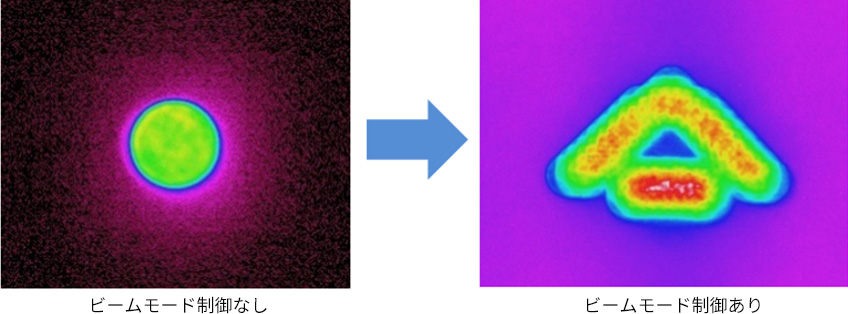 ビームモードを任意の形状に変更することで、それぞれの加工材料に最適なパターンと強度分布を実現