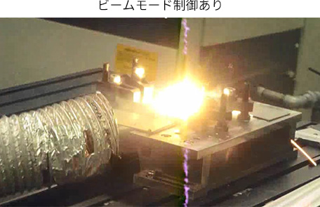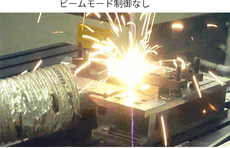 通常ではスパッタが発生してしまう条件下でも、ビームモード制御技術を使用することにより、スパッタを低減