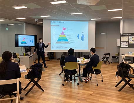 - 「働くとはどういうことか、企業とは何か」について考えてもらうため、当社社員との対話の場を設けました