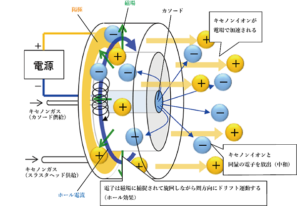 今回は、技術課題の一つであった「小型衛星の次世代ホールスラスタ(参考図参照)の軽量化・低コスト化」に向け、構成機器である電源に民生技術を活用することで課題解決を図ります。具体的には、古河電工が民生品開発で培ってきた熱設計技術や巻線設計技術、GaN(窒化ガリウム)パワーデバイスの研究等をベースに構築した電源の小型・軽量化技術と、JAXAが培ってきた宇宙環境下における放電制御技術などの研究成果を組み合わせることで、将来必要となる軽量化・低コスト化に係る要素技術の獲得を目指します。