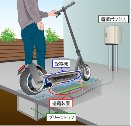 電動キックボードのワイヤレス充電ポートシステムを開発、実証開始