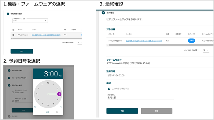 特長3 機器の設定やファームウェア変更の一括実施や予約実施が可能
