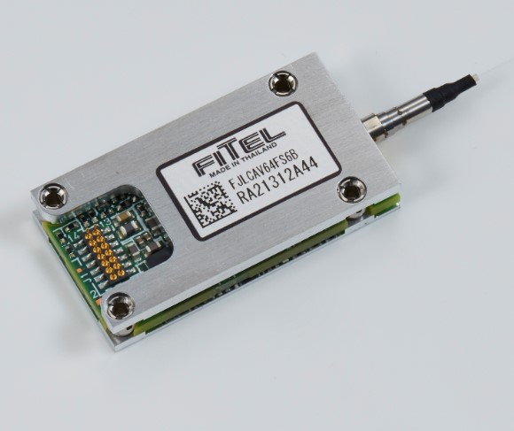 当社の制御回路付き波長可変レーザモジュールは、高出力で狭線幅動作が可能となるよう独自に設計された半導体レーザ素子設計、微小光学接合技術を駆使した高結合と低消費電力小型パッケージ設計、ならびに狭線幅特性を維持する電気制御回路の低雑音設計からなり、これらの技術による製品の量産化を実現した先駆的なものとなります。この技術の実用化により、現在光ファイバ通信で広く使われているデジタルコヒーレント通信用光源が実現しました。