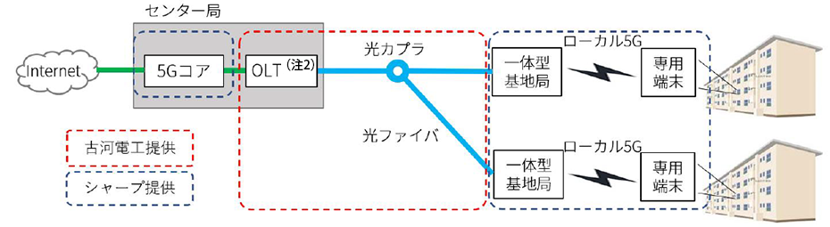 古河電工のPONシステム(注1)とシャープのローカル5Gシステムが連携