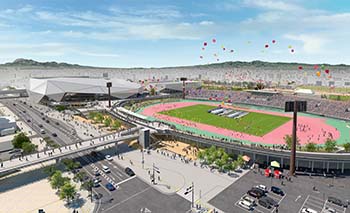 SAGAサンライズパーク整備事業の一環で建設が進められている、プロスポーツや文化イベントなどを開催できる多目的アリーナ。2023年春オープン予定。