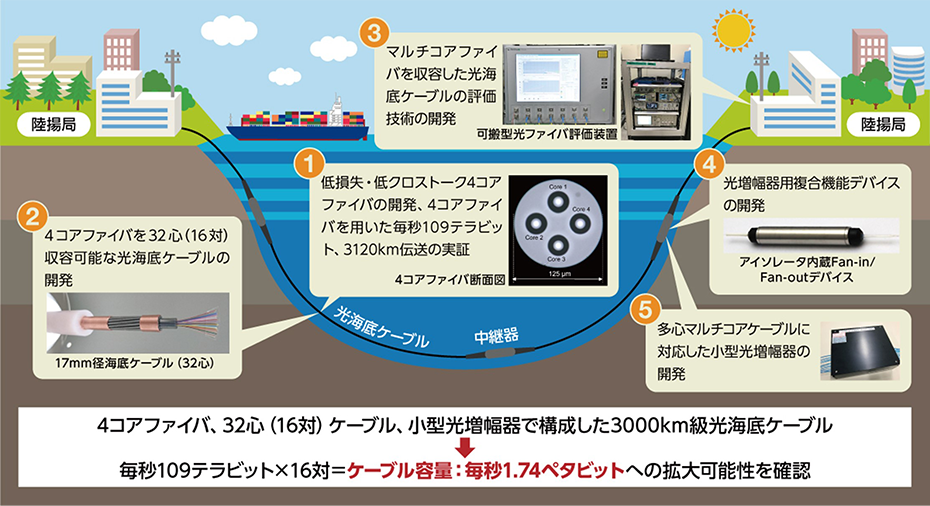 世界に先駆け、マルチコアファイバによる光海底ケーブルの大容量化を実現する基盤技術を開発・実証