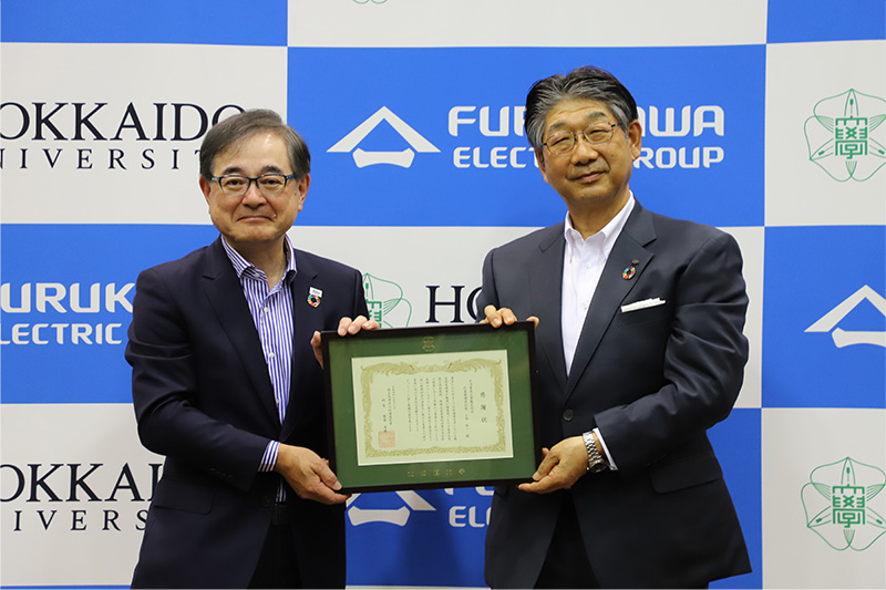 古河電工は脱炭素社会・循環型社会の実現に貢献する「環境配慮事業の創出」に取り組んでいますが、北海道大学とのこれまでの取り組みの実用化と脱炭素社会・循環型社会の実現に向けて一層連携すべく、本年度より北海道大学に寄附分野を開設する運びとなりました。
