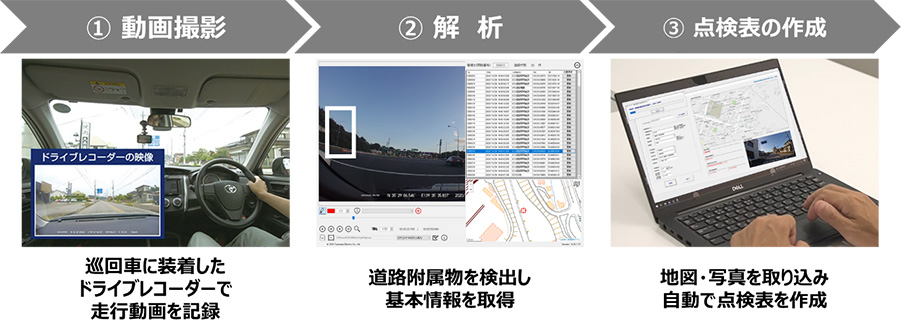| 名称 | ドライブレコーダを用いた道路附属物台帳整備の実証実験 |