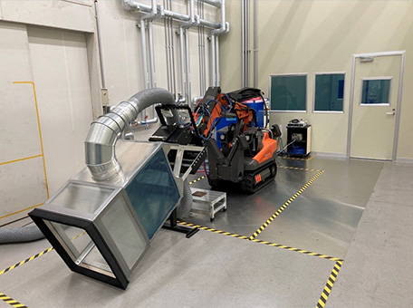 既存のレーザアプリケーションラボはファイバレーザの従来の用途である産業用向けで、インフラ構造物向けの実験は難しい状況でしたが、インフラレーザラボは、広さ45m2・天井高さ約5mの実験スペースを確保しており、大型サンプルでの実験にも対応可能です。