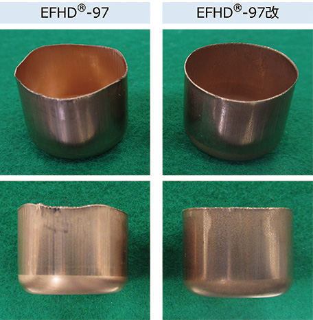 - EFHD®-97の絞り加工性を改良し、高強度・高導電率・高熱伝導性の特性を保ったまま「深さ/直径比」が10を超える円筒絞りを実現