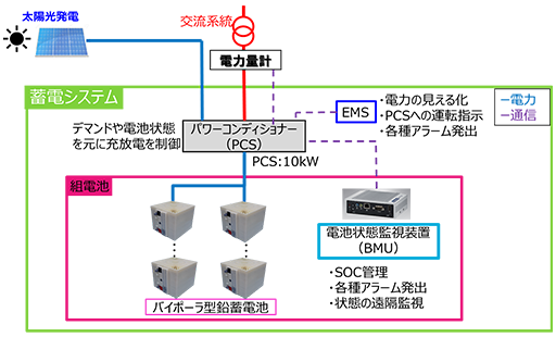 バイポーラ型鉛蓄電池と太陽光発電を連携した蓄電システムの実証実験を開始