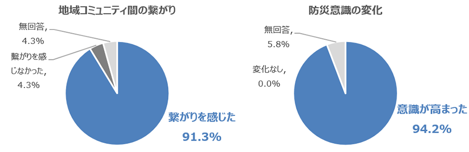 2022年度は、鹿児島県薩摩川内市・島根県美郷町・長野県長野市第一地区など全6地区で実証実験を実施し、地域住民や自治体職員と一緒に地区防災計画の作成および更新を進め、参加した住民の9割以上の方々より「地域コミュニティ間の繋がりを感じた」、「防災意識が高まった」と評価いただきました。