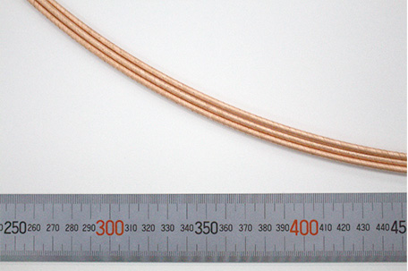そこで、雨宮 教授は、フィラメント同士を銅めっきで電気的に接続して超伝導ではない部分があっても電流の迂回を可能にするとともに、銅めっきマルチフィラメント薄膜高温超伝導線を丸いコア(芯材)のまわりにらせん状に巻き付けることで交流損失低減効果も維持できるのではないかと考え、原理検証のための基礎的な研究を進めてきました。