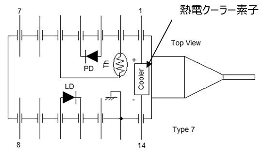 励起光源は、搭載している熱電クーラー素子の消費電力削減が励起光減全体の消費電力削減につながります(図1)。励起光源が高温環境で使用される場合、LDチップを冷却する必要がありますが、これにより熱電クーラー素子の電力消費が増加し、励起光源の消費電力が上昇してしまいます。そのため、励起光源の低消費電力化にはLDチップの高温動作が重要な要素となっています。