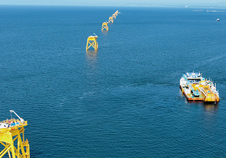 (注 1)福島浮体式洋上ウィンドファーム実証研究事業:2011年から福島県沖で開始された浮体式洋上風力発電システムの実証研究事業。当社は世界初となる66kVおよび22kV浮体式洋上風力発電に適合した海底線送電システムの設計・製造・布設を担当。