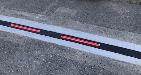 現在のラインナップは、ケーブル保護機能のみのトラフとLEDを組み込んだインジケータ機能付きのトラフの2種類です。今後は、信号の判別が困難な人(視覚障がい者・高齢者など)に対して、横断のタイミングを足元から伝達するシステムなどの多用途展開を検討しています。