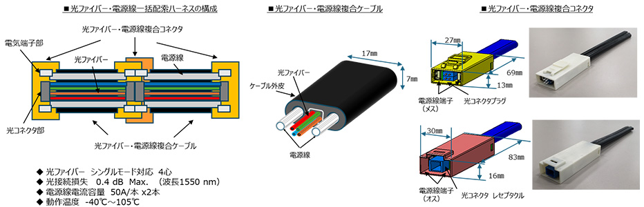 なお、デモンストレーションシステムには、本研究で開発された、シリコンフォトニクス素子、光ファイバー・電源線一括配索ハーネス(FASPULS®:Flexible Automotive Signal and Power Unified Line System)が搭載されています。