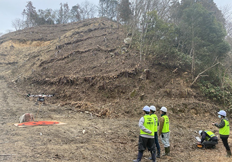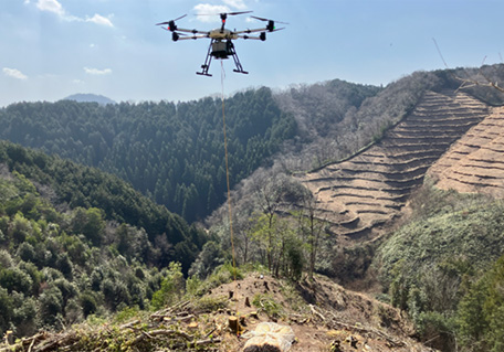 - 特殊大型ドローンを活用して苗木や資材を急傾斜地などに運搬する実証実験が2025年3月に完了