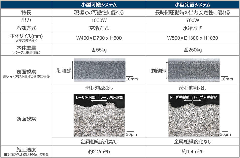 表 小型可搬システムと小型定置システムの比較