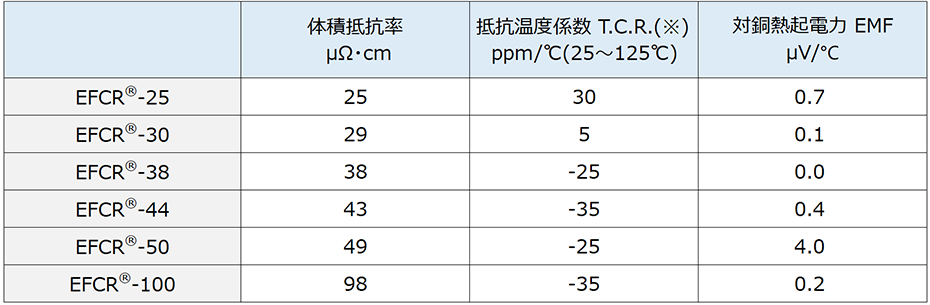 - 銅系抵抗材料EFCR®シリーズに「EFCR®-25」「EFCR®-38」「EFCR®-50」が加わり、全6点に