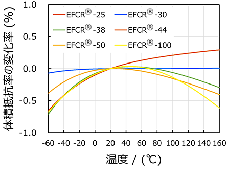 EFCR®-38:体積抵抗率は高精度な電流検出に好適な38μΩ・cmで、温度変化に対して安定した抵抗率を保つ特性を持つため(図2)車載用抵抗器に適しており、設計の選択肢を広げることができます。