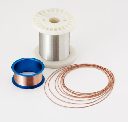 情報通信ケーブルや電力ケーブル等の各種伝送ケーブルに加え、マイクロスピーカ用のエナメル線や医療用の超弾性線など、幅広い業界に向けてさまざまな合金線を提供しています。