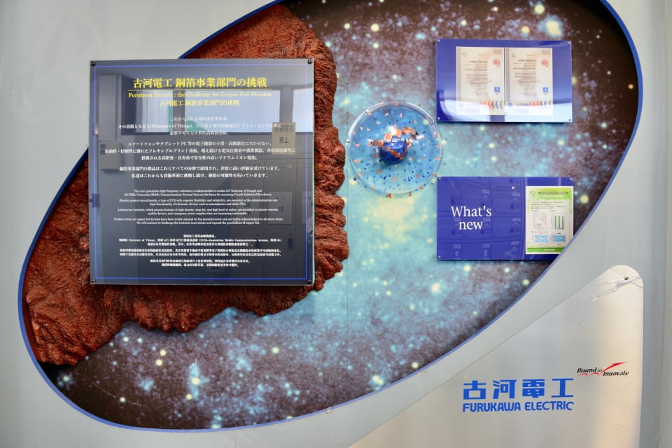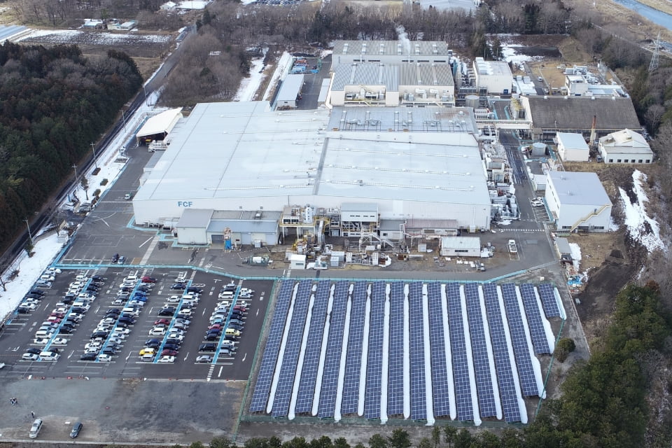 銅箔事業部門は、リチウムイオン電池や各種モバイル機器、サーバ・ルータ等の情報通信機器に内蔵されているプリント配線板用として使われている電解銅箔を製造する事業所です。電解銅箔の製造では大量の電力を消費します。そのため、非化石燃料由来の電力を購入、敷地内に設置した太陽光ソーラーパネルで一部の電力確保するほか、電解銅箔は「リサイクル銅含有率100%」であり、使用済み銅電線をリサイクルするなどして、環境負荷を抑えています。